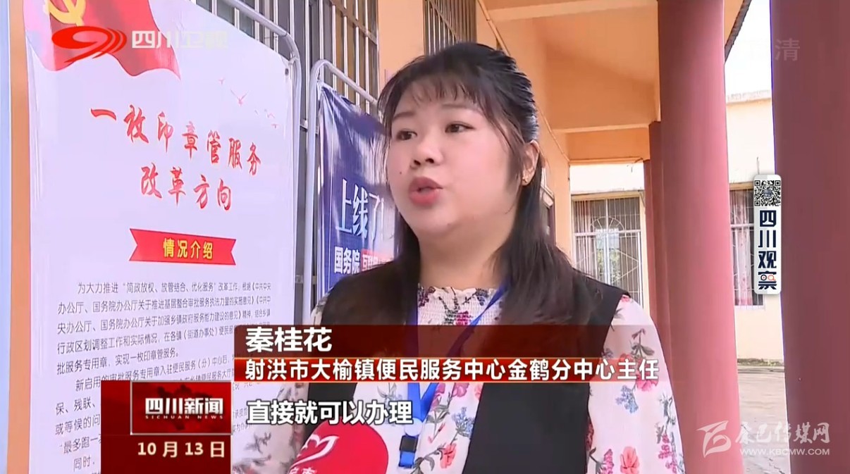 射洪市大榆鎮(zhèn)便民服務(wù)中心金鶴分中心主任秦桂花說:“現(xiàn)在這個(gè)一枚印章整合之后 這邊分中心直接就可以辦理 非常的便民?!?nbsp;