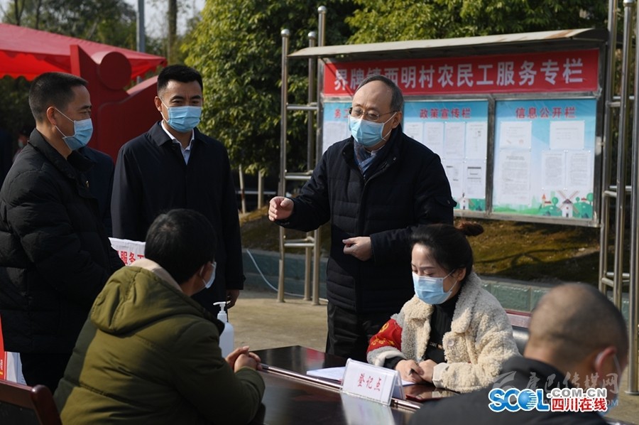 尹力在綿陽市安州區(qū)界牌鎮(zhèn)西明村,詳細了解農(nóng)村地區(qū)疫情防控、春耕生產(chǎn)、農(nóng)民工就業(yè)、外出務(wù)工人員健康申報證明服務(wù)工作。