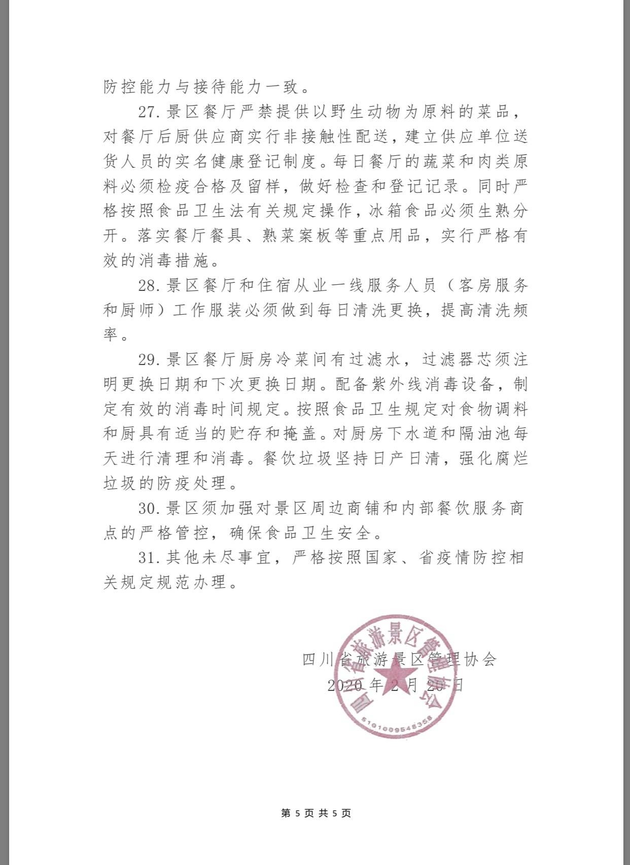 2月20日,四川省旅游景區(qū)管理協(xié)會(huì)對(duì)外發(fā)布《四川省新型冠狀肺炎疫情防控期間旅游景區(qū)開放工作指南》(以下簡(jiǎn)稱“《指南》”),對(duì)此前因疫情防控暫時(shí)關(guān)閉的景區(qū)恢復(fù)開放“指點(diǎn)迷津”,提出景區(qū)須通過網(wǎng)絡(luò)實(shí)名制購票,日接待量不超過日最大承載量的50%,景區(qū)要設(shè)立臨時(shí)隔離點(diǎn)等。