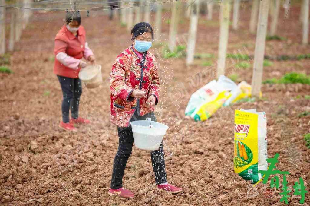 巴中市恩陽區(qū)上八廟鎮(zhèn)安居村的葡萄產(chǎn)業(yè)園里,產(chǎn)業(yè)員工佩戴口罩,分散在產(chǎn)業(yè)園里施肥。