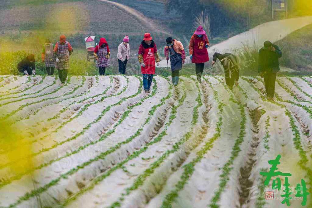 內(nèi)江市東興區(qū)富溪鎮(zhèn)太平壩村,戴著口罩的村民抓住晴好天氣忙著備耕。