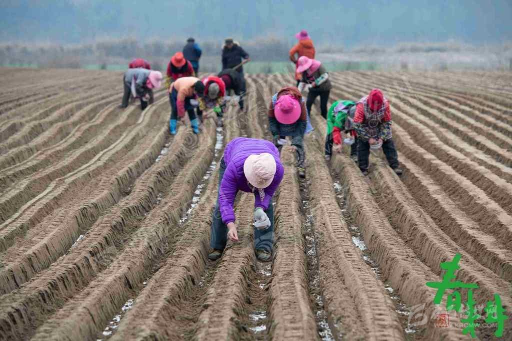 射洪市沱牌鎮(zhèn)桑樹林村,戴著口罩的農(nóng)戶正在地里播種、蓋膜。