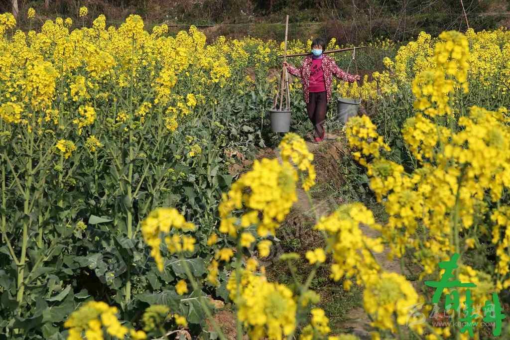 閬中市江南街道辦事處鐘山村,工人在給油菜噴灑農(nóng)藥。