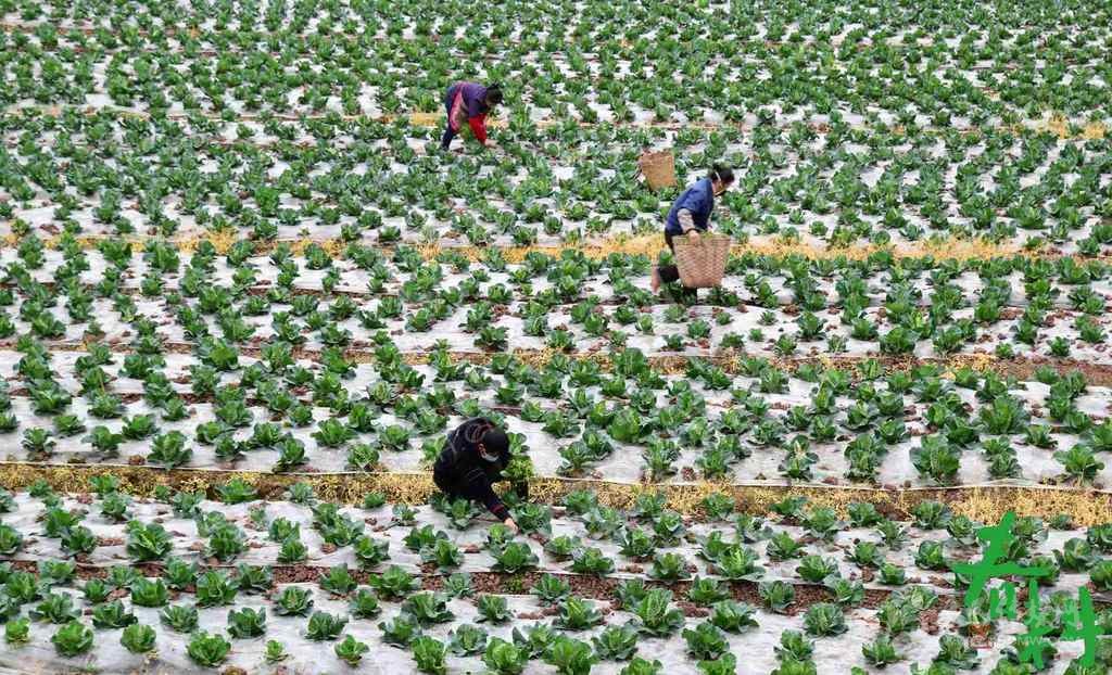 綿竹市紫巖街道雙坪村5組,當(dāng)?shù)剞r(nóng)戶在天佑家庭農(nóng)場收割青菜,以便騰地后用于水稻生產(chǎn)。