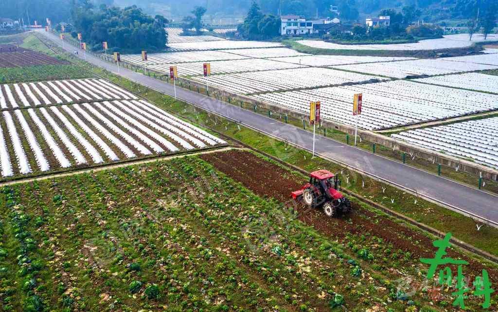 閬中市彭城鎮(zhèn)五谷臺村,機械正在菜地里作業(yè),開溝起壟施底肥一氣呵成。