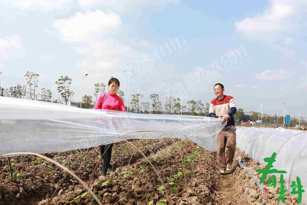 閬中市彭城鎮(zhèn)五谷臺村,村民在精心管護蔬菜,把菜苗從薄膜里“掏出來”。