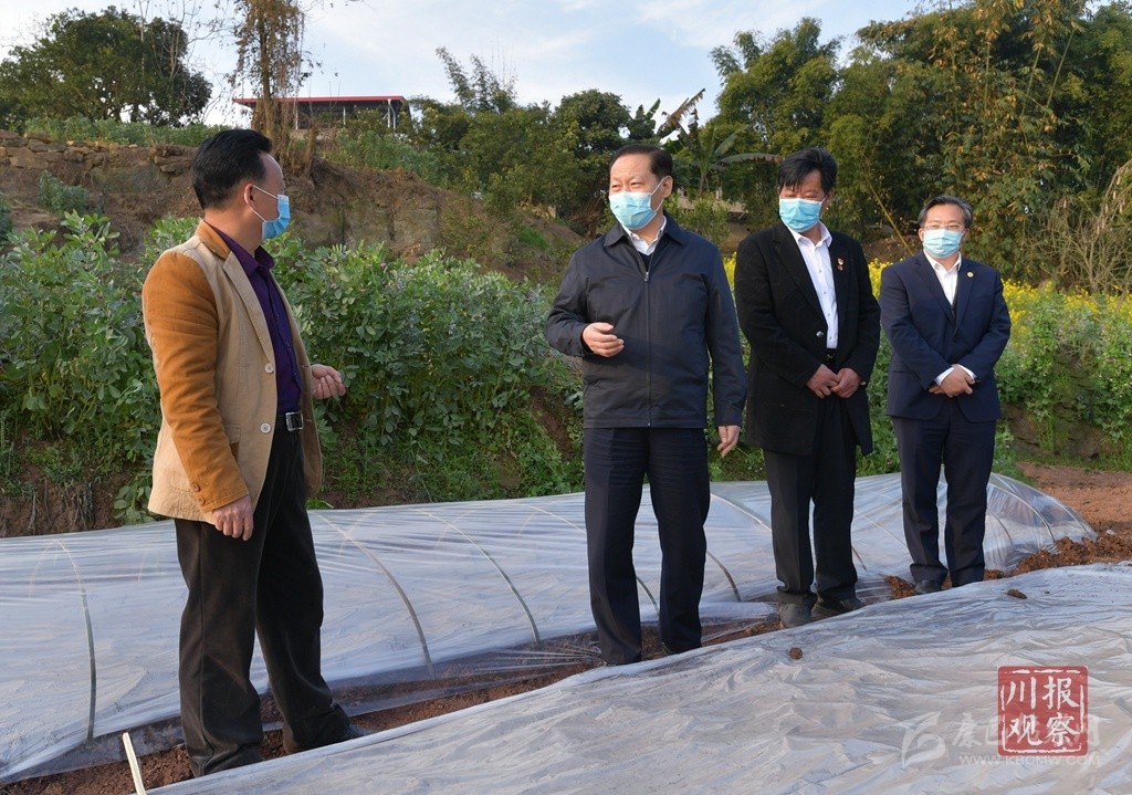 農(nóng)歷驚蟄時(shí)節(jié),田間地頭到處是機(jī)耕、播種、育秧的忙碌景象。彭清華來(lái)到瀘州市合江縣白米鎮(zhèn)斗笠村和自貢市榮縣雙石鎮(zhèn)大竹林村、蔡家堰村,實(shí)地了解農(nóng)村地區(qū)疫情防控、春耕備耕、生豬生產(chǎn)、農(nóng)民工外出務(wù)工等情況。