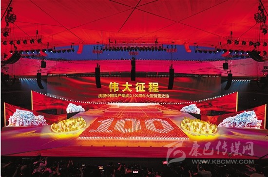 在被稱為中國(guó)心臟的北京天安門(mén)廣場(chǎng),慶祝中國(guó)共產(chǎn)黨成立100周年大會(huì)持續(xù)一個(gè)半小時(shí),展現(xiàn)出一個(gè)世紀(jì)來(lái)她把世界上人口最多國(guó)家從屈辱劫難領(lǐng)向強(qiáng)盛繁榮的歷程。廣場(chǎng)上矗立著黨徽,鋪著紅毯。懸掛巨幅黨旗和“偉大的中國(guó)共產(chǎn)黨萬(wàn)歲”等標(biāo)語(yǔ)的飛行器,列隊(duì)從云層下轟鳴飛過(guò)。在《義勇軍進(jìn)行曲》的伴奏下升起五星紅旗。