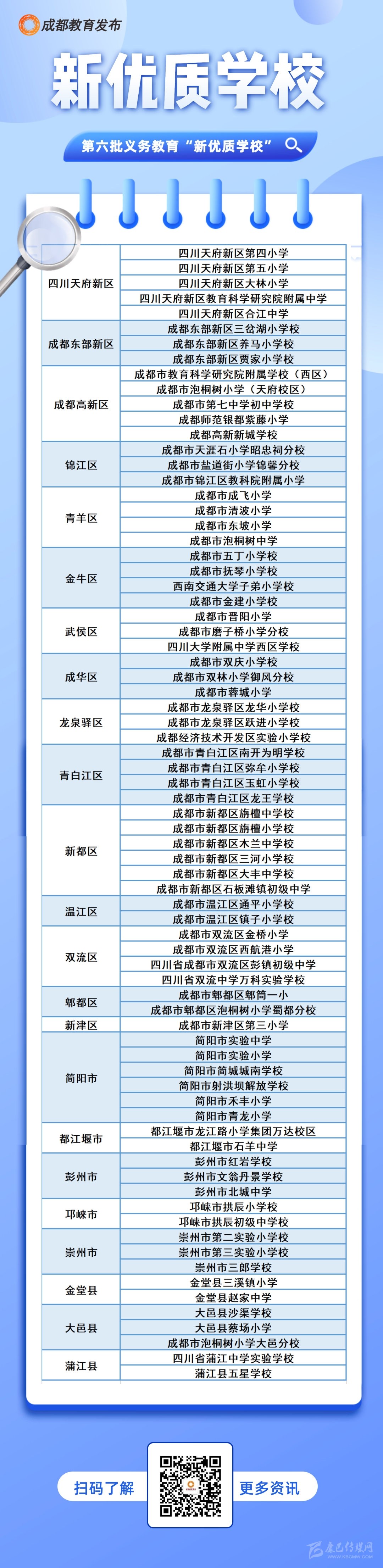 記者從成都市教育局獲悉,1月13日,成都市教育局公布全市第六批義務(wù)教育“新優(yōu)質(zhì)學(xué)校”名單,成都七中初中學(xué)校等75所學(xué)校被認定為全市義務(wù)教育“新優(yōu)質(zhì)學(xué)?!保麊胃胶螅?。