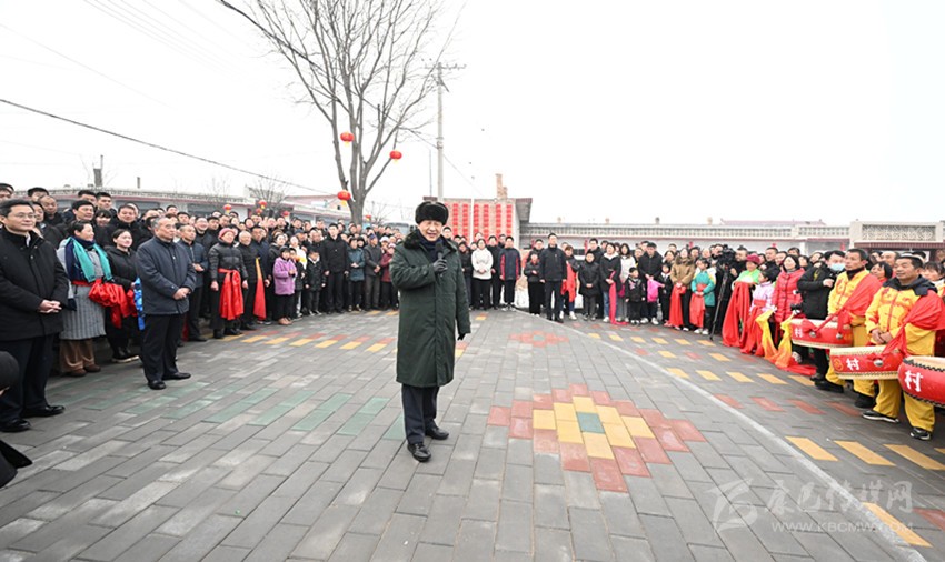村文化廣場(chǎng)上十分熱鬧,村民們打起威風(fēng)鑼鼓、扭起秧歌歡慶佳節(jié)??吹娇倳泚砹?,人們高興地歡呼起來。習(xí)近平對(duì)鄉(xiāng)親們說,我們黨的根本宗旨就是為人民群眾辦好事,為人民群眾幸福生活拼搏、奉獻(xiàn)、服務(wù)。我們?nèi)缙诖蜈A了脫貧攻堅(jiān)戰(zhàn),如期實(shí)現(xiàn)了全面建成小康社會(huì)目標(biāo),現(xiàn)在踏上了全面建設(shè)社會(huì)主義現(xiàn)代化國家新征程。建設(shè)現(xiàn)代化國家離不開農(nóng)業(yè)農(nóng)村現(xiàn)代化,要繼續(xù)鞏固脫貧攻堅(jiān)成果,扎實(shí)推進(jìn)鄉(xiāng)村振興,讓群眾生活更上一層樓,在推進(jìn)農(nóng)業(yè)農(nóng)村現(xiàn)代化中越走越有奔頭。