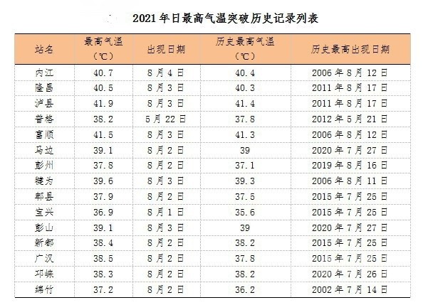 2021年日最高氣溫突破歷史記錄列表
