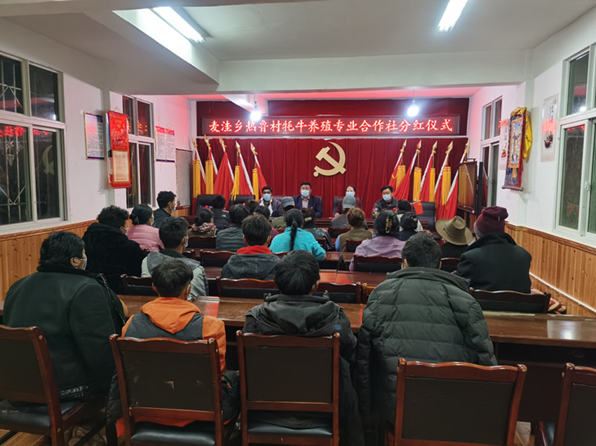 圖為沈陽在拉日馬鎮(zhèn)集體牧場了解產業(yè)發(fā)展情況。