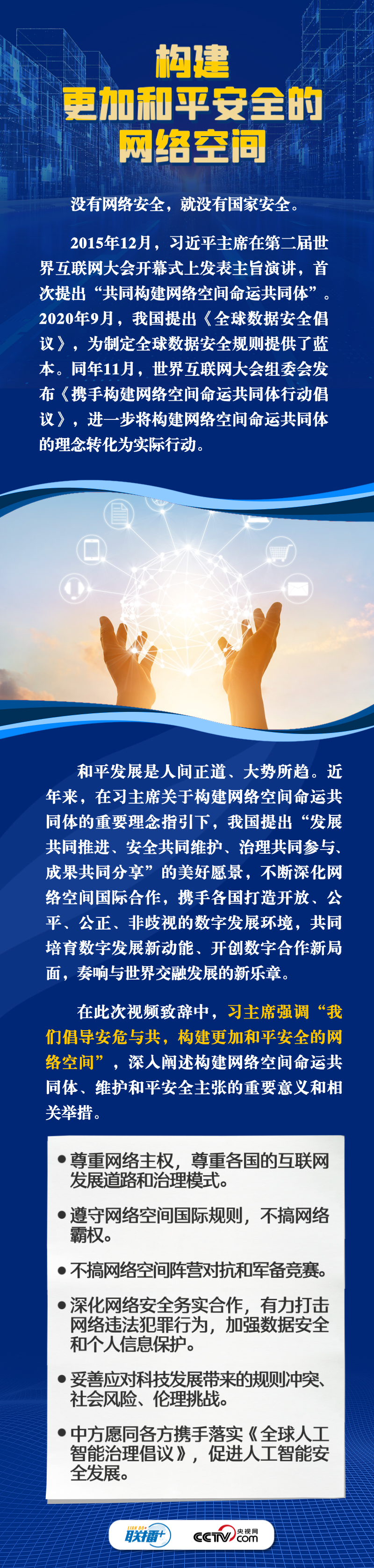 聯(lián)播+11月8日,習(xí)近平主席向2023年世界互聯(lián)網(wǎng)大會烏鎮(zhèn)峰會開幕式發(fā)表視頻致辭。自2014年首屆世界互聯(lián)網(wǎng)大會舉辦以來,習(xí)主席通過發(fā)表主旨演講、視頻致辭或者向大會發(fā)來賀信等不同形式關(guān)心大會的舉辦,始終倡導(dǎo)構(gòu)建網(wǎng)絡(luò)空間命運共同體,得到國際社會廣泛認同和積極響應(yīng)。
