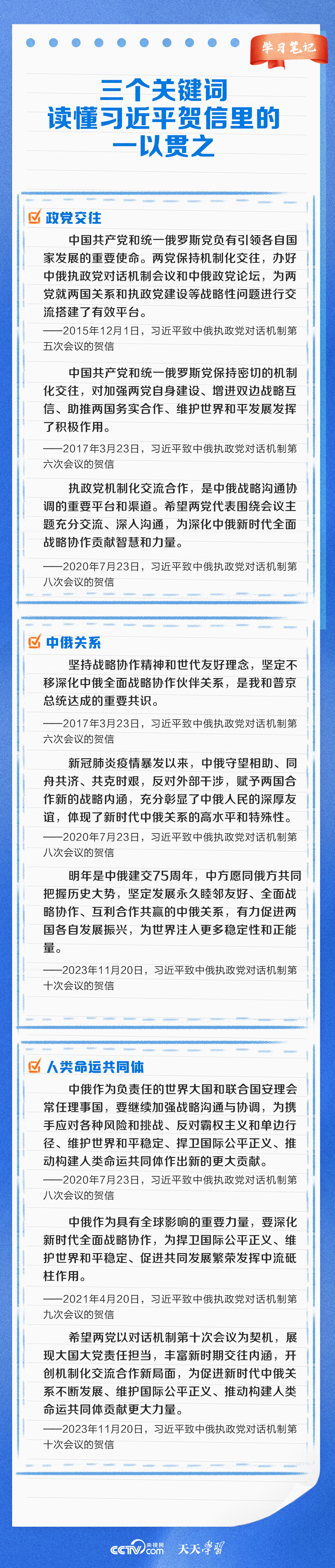 天天學(xué)習(xí)11月20日,中俄執(zhí)政黨對話機制第十次會議以視頻方式舉辦。習(xí)近平總書記同普京總統(tǒng)分別向會議致賀信。習(xí)近平總書記在賀信中強調(diào),中俄執(zhí)政黨對話機制已發(fā)展成為兩國鞏固政治互信、密切戰(zhàn)略協(xié)作、推進互利合作的獨特渠道和平臺。