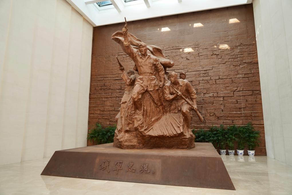 這是近日拍攝的新四軍紀(jì)念館內(nèi)的鐵軍忠魂雕塑。新華社記者 李博 攝