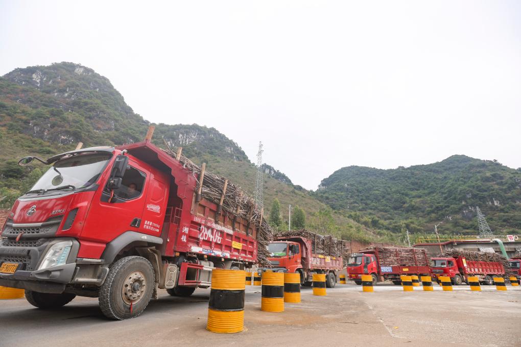 近日,在廣西來(lái)賓市一糖廠,裝滿甘蔗的車(chē)輛正排隊(duì)入廠。新華社記者 胡星宇 攝