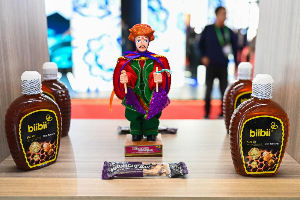 2023年11月8日在第六屆進博會上拍攝的尼加拉瓜蜂蜜產(chǎn)品。
