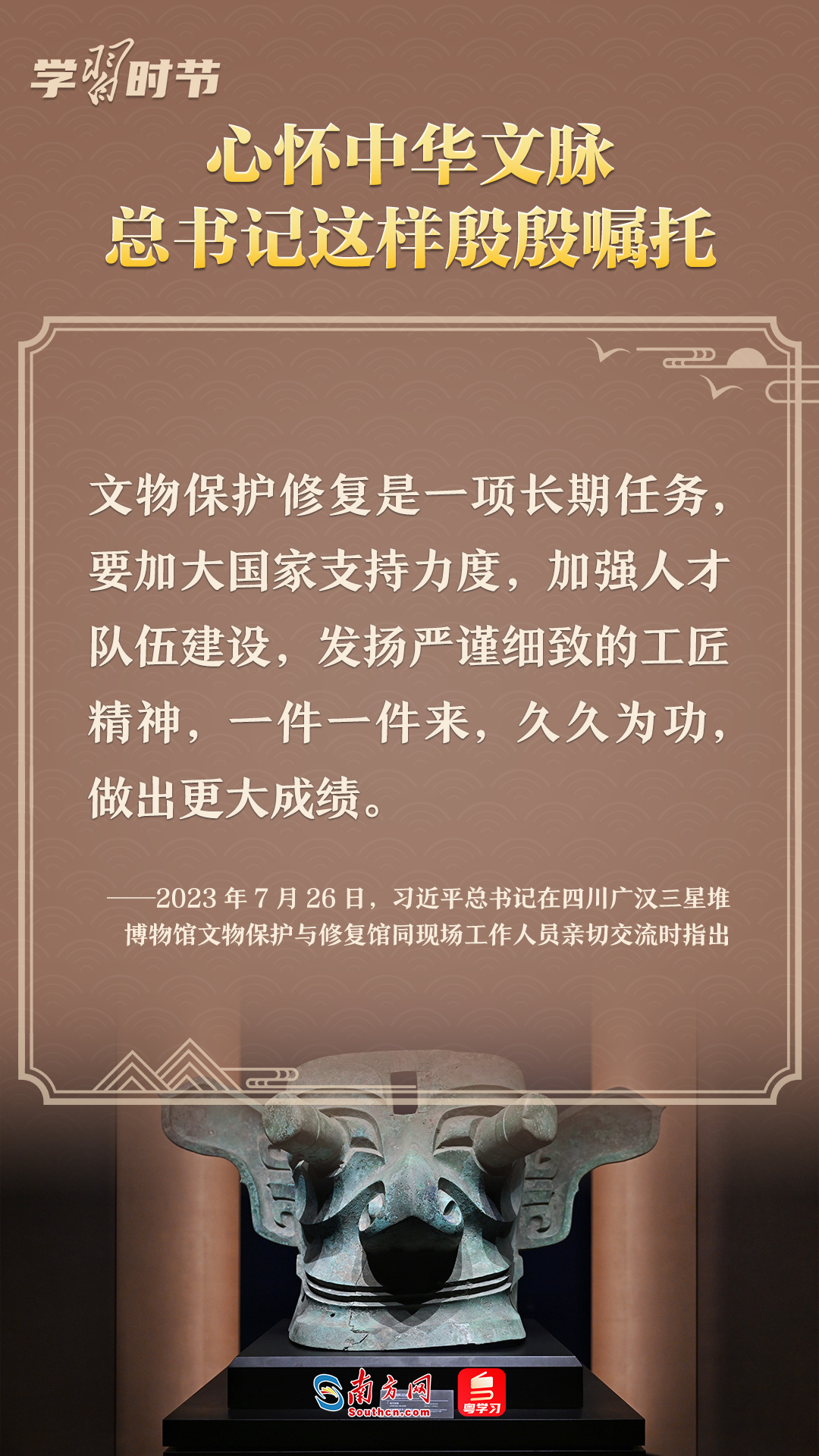 習(xí)近平總書記強(qiáng)調(diào),只有全面深入了解中華文明的歷史,才能更有效地推動(dòng)中華優(yōu)秀傳統(tǒng)文化創(chuàng)造性轉(zhuǎn)化、創(chuàng)新性發(fā)展,更有力地推進(jìn)中國(guó)特色社會(huì)主義文化建設(shè),建設(shè)中華民族現(xiàn)代文明?;赝?023,總書記多次就中華文化傳承發(fā)展作出重要闡述。讓我們一起學(xué)習(xí),一同賡續(xù)歷史文脈、譜寫當(dāng)代華章。