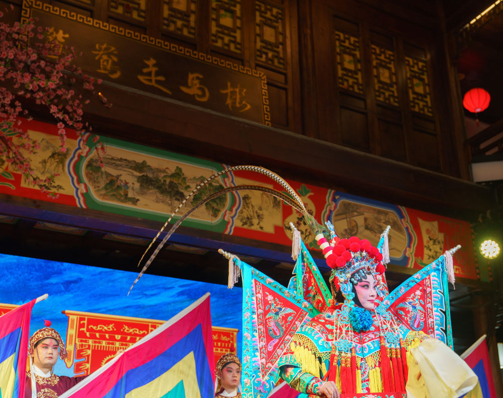 ??戲劇演員在鴛鴦走馬樓內(nèi)演出