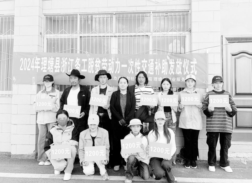 圖為向理塘外出浙江務工人員發(fā)放交通補助。