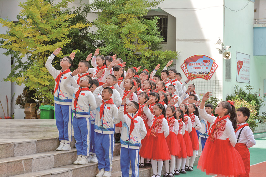活躍提升組織生活也是少先隊工作強(qiáng)基固本的重要環(huán)節(jié)。通過健全少先隊階梯式成長激勵體系;全面實(shí)施分批入隊、分段教育、分級激勵和推優(yōu)入團(tuán);依托“紅領(lǐng)巾獎?wù)隆备采w隊中教育全過程等措施,全市14至15周歲新入團(tuán)團(tuán)員經(jīng)由少先隊組織推優(yōu)入團(tuán)達(dá)100%。此外,全覆蓋開展“開學(xué)第一堂隊課”、主題隊課活動,規(guī)范舉行入隊儀式等,讓少先隊員組織意識和光榮感全面增強(qiáng)。