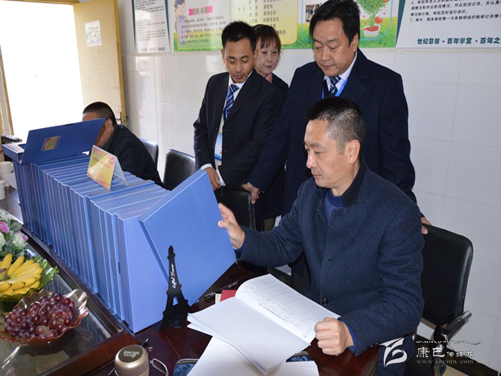圖為檢查組一行在城區(qū)第一小學查閱資料。