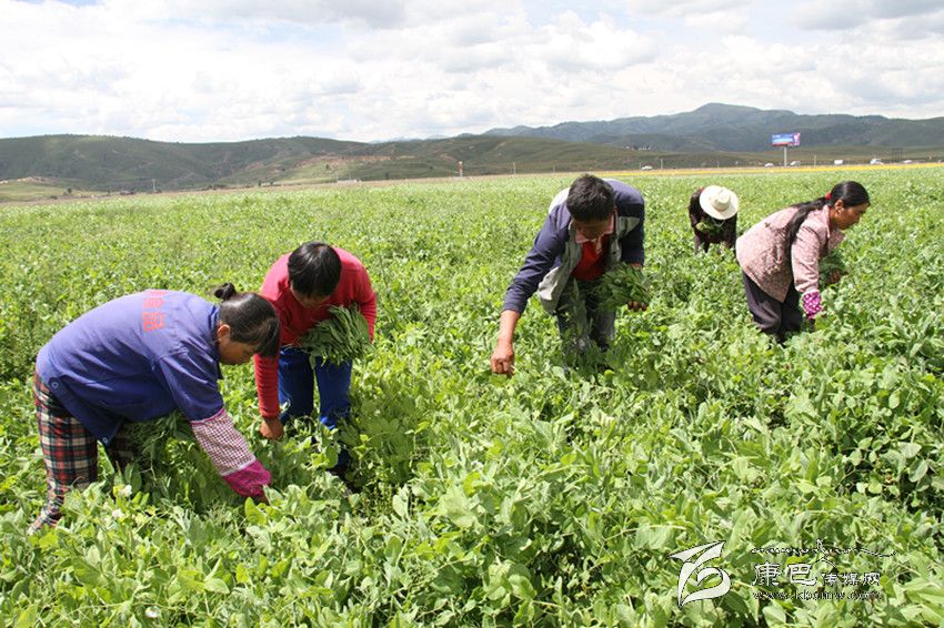 理塘圣地農(nóng)莊工人正在采摘豌豆尖。
