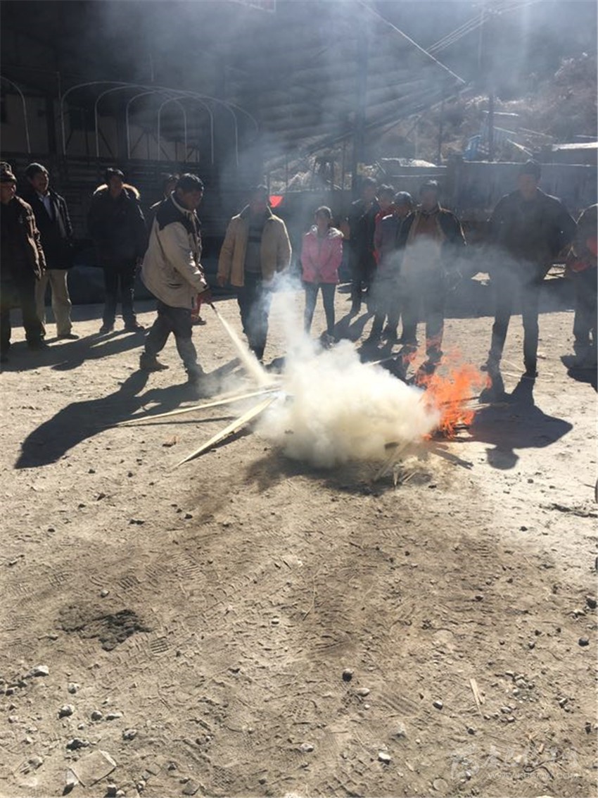 本網(wǎng)訊(何才華 文/圖)“滅火器使用時,要先除掉鉛封、拔掉保險銷,左手握噴管、右手提壓把,在距離火焰兩米左右的地方用右手用力壓下壓把……”12月15日,鄉(xiāng)城縣香巴拉鎮(zhèn)集中為該鎮(zhèn)9村534戶群眾集中發(fā)放滅火器時,鎮(zhèn)長羅斌用藏語耐心地向村民講解滅火器的使用方法。