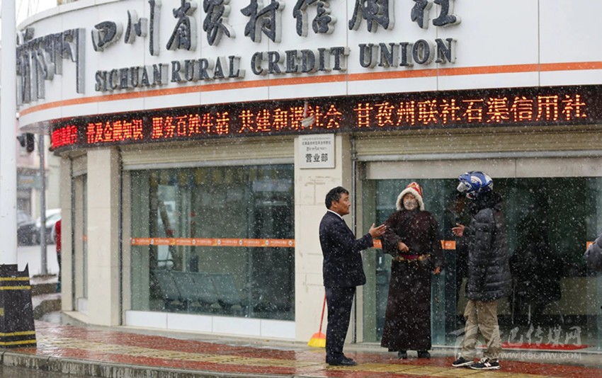 去年歲末年初,大雪紛飛,石渠縣城的商店已是關門閉戶。而為盡快讓農牧民群眾順利領到國家惠民補貼,信用社同事們一個不少地集中在營業(yè)部為農牧民群眾辦理支取、轉賬等業(yè)務。雖然能開的取款點窗口已經全開,大家也攢足了勁兒地工作,可取款的隊伍依然從營業(yè)室延伸到了大雪中……。想著遠在幾十公里外洛須分社檢查工作的起麥郎加,營業(yè)部主任許琪趕緊給他打個電話。“起哥,你那邊檢查還順利嗎?”許琪有些忐忑,不好意思“催”他回來。“差不多了。只是雪越來越大,暫時走不了……”起麥郎加向許琪說起外面的情況。他們都知道,高原降雪時,是不宜趕路的,說不準什么時候暴雪來臨,就會被困半路?!敖裉炷芑貋韱??”高原地區(qū)本有個不成文的“規(guī)矩”,為了路途安全,一般下鄉(xiāng)是不催促的,可許琪還是忍不住多問上一句。“是很忙嗎?我馬上回來……”起麥郎加斬釘截鐵地表示馬上返城,他知道家中(單位)一定是很忙,需要幫手。他心里清楚,只有趕緊回到營業(yè)部,才能多為大家分擔一些工作,才能讓農牧民群眾盡快取到款。