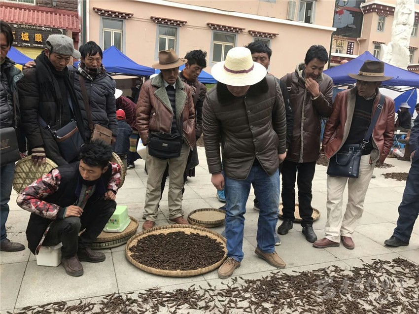 理塘縣素有“世界高城”之稱,因海拔高,出產(chǎn)的蟲草具有蟲長草短、質(zhì)堅色黃、斷面黃白、氣香味鮮等特點。由于理塘縣是我州南路最大的蟲草產(chǎn)區(qū),在每年5月至6月蟲草采集季節(jié),全縣24個鄉(xiāng)(鎮(zhèn))、州內(nèi)其它縣的3萬余名采集人員集中涌入曲登等四鄉(xiāng)主產(chǎn)區(qū)采集蟲草。農(nóng)牧民群眾把采集到的蟲草賣給收購藥材的老板,在這些老板中,不僅有開公司的傳統(tǒng)商人,還有開網(wǎng)店的大學(xué)生。