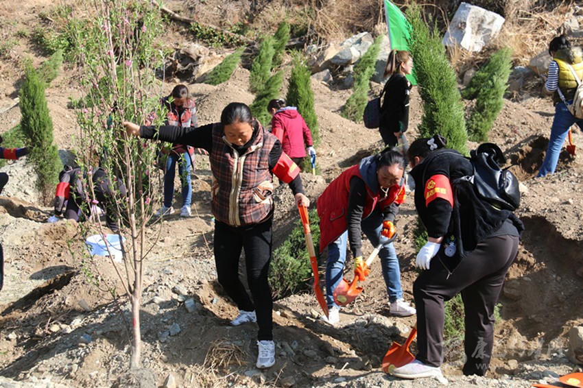 植樹現(xiàn)場(chǎng)熱火朝天。