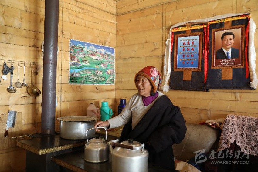 “我是村上第一個(gè)掛習(xí)主席唐卡畫像的脫貧戶!這幅黑白唐卡是我入住新房當(dāng)天掛的;幾天后,畫師又送我一幅彩色的,于是我就把這兩幅唐卡并排掛在客廳里。如今,全村家家戶戶都在客廳里掛上了習(xí)主席彩色唐卡。要是沒(méi)有習(xí)主席提出實(shí)施精準(zhǔn)扶貧,恐怕我們現(xiàn)在還住在山上受窮!”11月28日上午,當(dāng)筆者來(lái)到距德格縣城37公里的龔埡鄉(xiāng)雨托村采訪時(shí),77歲的建檔立卡貧困戶呷瑪西繞指著習(xí)主席唐卡畫像激動(dòng)地說(shuō)。