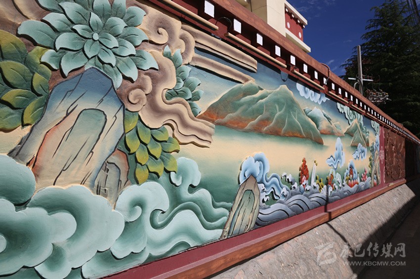 當筆者一行走在巴塘縣城,墻體繪畫上“巴塘八景”躍然于上,“巴山積雪”“柳林較射”“桃園賞花”“板橋垂釣”“古桑抱石”“溫泉沐浴”“暖石回陽”“老柳夾槐”色彩豐富、構思精巧,平淡無奇的墻面因為一幅幅鮮活的繪畫變得生活,一面墻一幅畫一個故事。街頭巷尾,十字路口的“大鵬蓮花燈”“九眼天珠燈”“走馬燈”高高懸掛展示巴塘風貌。以“茶馬古道”為主題打造的“最美古鎮(zhèn)”,悠悠古韻講巴塘故事,古色古香顯巴塘韻味……