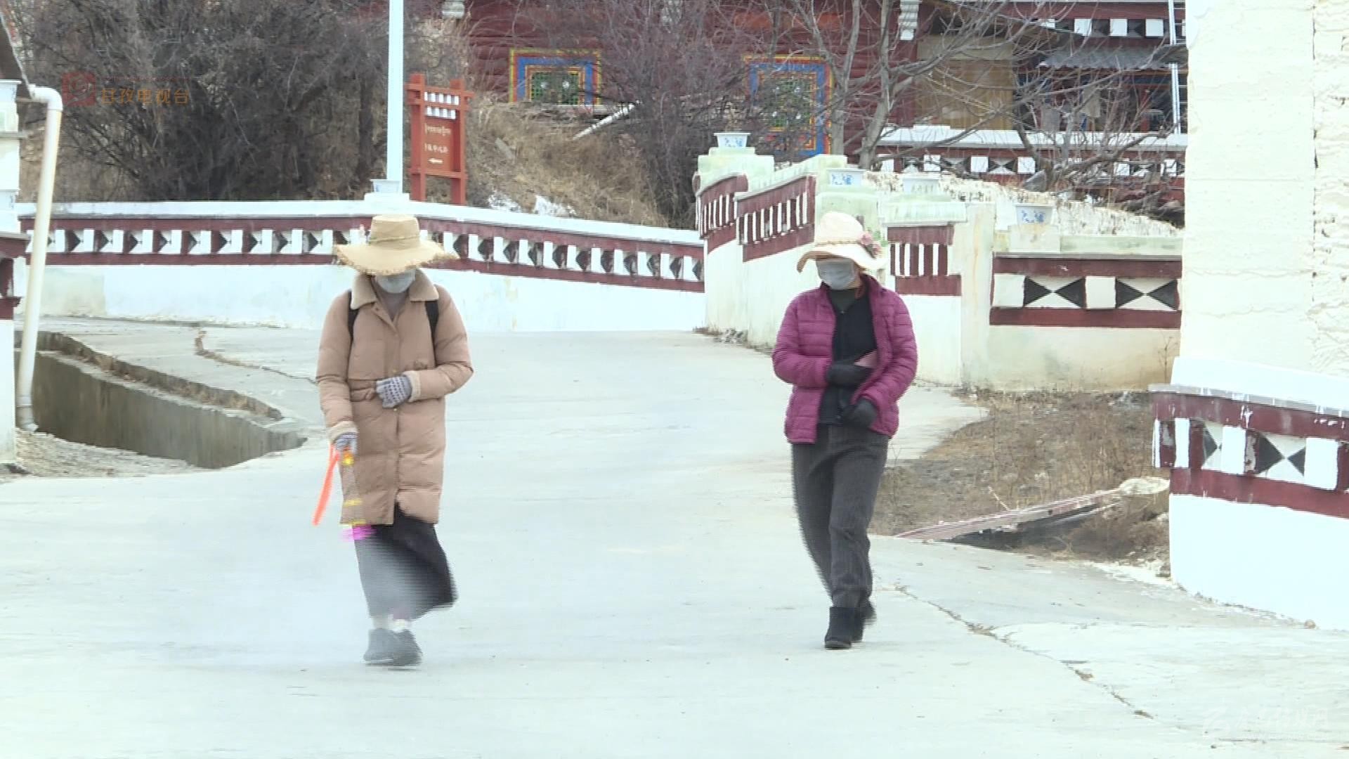 除了7個州縣級卡點(diǎn)外,在各鄉(xiāng)村同樣是嚴(yán)防死守,筑牢了嚴(yán)控疫情的第一防線。在距離縣城三公里的格西鄉(xiāng)若珠村村口,我們看到村黨支部書記澤機(jī)和村委會主任尼瑪降澤頂著寒風(fēng)依然駐守在卡點(diǎn)上。尼瑪降澤介紹說全村有65戶283人,他說支部書記負(fù)責(zé)村口卡點(diǎn)的24小時值守,其余六名村干部就負(fù)責(zé)包戶巡邏檢查,每天村里的消毒,村民的體溫監(jiān)測統(tǒng)計等等,大家都繃緊著嚴(yán)防死守這根弦。