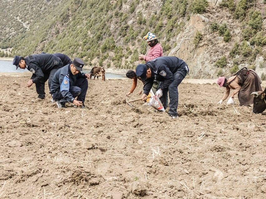 德格民警操作翻地機(jī)助農(nóng)犁地挖“