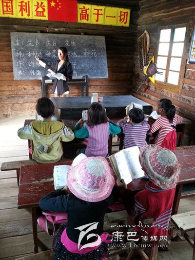 村小唯一的老師、90后藏族女孩鄧珠志瑪在黑板上寫下:生日、種樹、外面……字很大很方,“教室里沒有電燈,字寫小了怕孩子看不到。”兩排課桌,6個一年級學生坐在長板凳上,當天有個孩子請假了,這是村小唯一的班,共7個孩子。“來,同學們和我一起念。”鄧珠志瑪朗讀起黑板上的詞語,孩子們的聲音很洪亮。