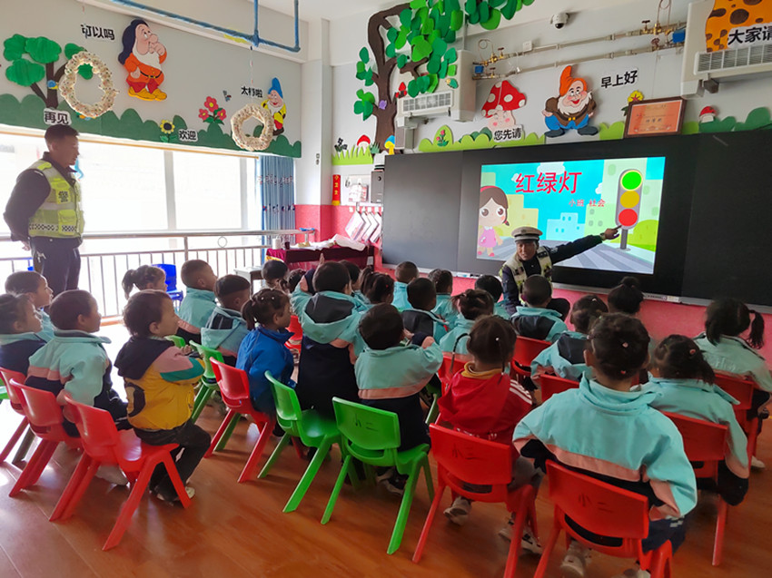 本網(wǎng)訊 日前,理塘縣高城鎮(zhèn)幼兒園開展了交通安全進(jìn)課堂活動,引導(dǎo)孩子們從小養(yǎng)成遵守交通規(guī)則的好習(xí)慣。圖為交警為幼兒講解交通安全知識。降央曲西 葉強(qiáng)平 攝影報道