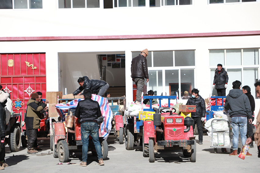 “今天我們村的17戶村民來(lái)領(lǐng)物資,臨近春節(jié)了,這些生活用品的發(fā)放真是太及時(shí)了,感謝黨和政府的關(guān)懷,我們的生活真是越來(lái)越好了。”熱加鄉(xiāng)拉巴村村民昂布開心地說(shuō)。