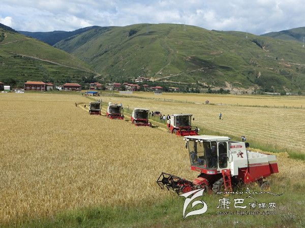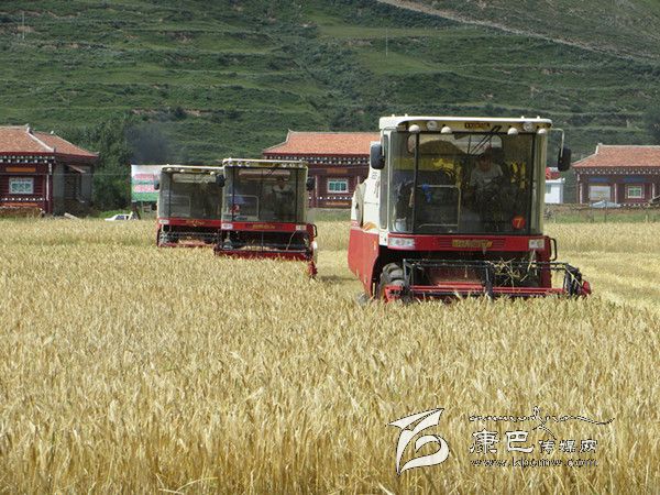 本網(wǎng)訊(胡筱紅 龍正芳 文/圖) 高原的八月是絢麗多彩的時節(jié),是糧食收獲的季節(jié)。爐霍縣300畝全程機械化青稞作業(yè)示范片項目機收工作于8月20日正式啟動,共出動大型聯(lián)合收割機5臺、拖拉機5臺同時作業(yè),正常情況下一臺收割機一天可以收割65至70畝,青稞示范片不出5天就能完成收割。對比以往的種植和收獲方式,全程機械化作業(yè)從播種到收獲帶來的社會效益及經(jīng)濟(jì)效益都遠(yuǎn)遠(yuǎn)高于傳統(tǒng)種植方式。