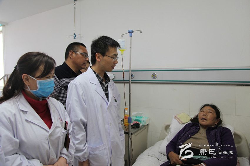●崔文耀(中)、李羅紅(左二)開(kāi)展護(hù)理查房。