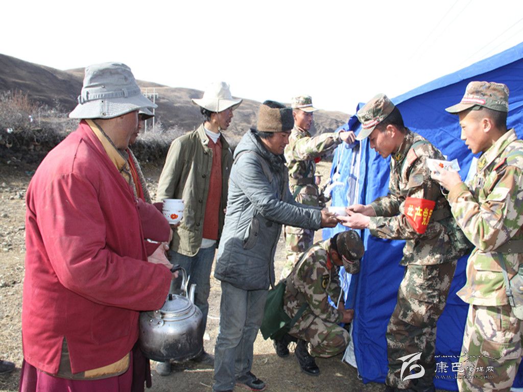 自康定“11·22”地震發(fā)生后,各方救援力量紛紛奔赴災(zāi)區(qū)開展救援工作。中谷村海拔約4000米,這里氣候寒冷,全村182戶不同程度受災(zāi),在救援隊(duì)大力幫助下,該村得到了很好的安置。在救援安置過程中,該村金龍寺的僧人和村民們被救援隊(duì)員們一方有難八方支援和艱苦奮斗的精神所感動(dòng),他們發(fā)現(xiàn)救援隊(duì)員們很難喝上熱水時(shí),就懷著一顆感恩的心,搭灶架鍋燒起了熱茶,送到救援隊(duì)員手中,表示感謝。