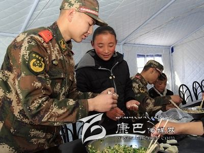 12月7日,康定6.3級(jí)地震后的第二個(gè)周末,這對(duì)甘孜州西康福利學(xué)校的孩子們來說,是一個(gè)開心的日子。當(dāng)天上午,武警甘孜州支隊(duì)抗震救災(zāi)一線官兵來到學(xué)校,與在這里生活學(xué)習(xí)的孤兒和特困生一起包餃子,度過了一個(gè)溫暖的周末。12歲的措姆性格靦腆,她把餃子皮攤在手心,一旁的戰(zhàn)士王兵舀了一勺餡放在餃子皮中央,可措姆怎么也沒法把餃子包得像模像樣。在王兵的輔導(dǎo)下,措姆很快學(xué)會(huì)包了一個(gè)漂亮的餃子。在學(xué)包餃子過程中,五六十雙手就包出五六十種餃子,看著自己的勞動(dòng)成果,孩子們特別開心。吃過午飯,武警官兵們還精心安排了疊被子活動(dòng),在帳篷內(nèi)教孩子們?cè)趺疮B軍被。大家一起動(dòng)手,你教我疊,熱鬧極了。(宋科霖 /文 郝勇 /攝)
