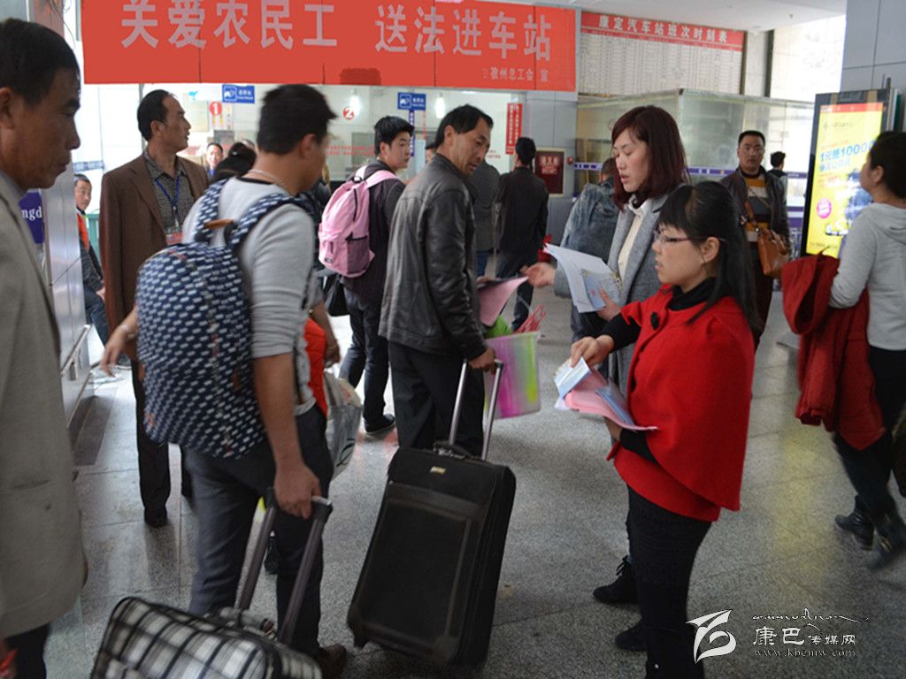本網(wǎng)訊(宋華玉 記者 秦松 文/圖)“這個資料太實(shí)用了,讓我們可以了解自己的權(quán)益有哪些、勞動合同書是怎樣的。”當(dāng)在康定汽車站內(nèi)的農(nóng)民工拿到由州總工會發(fā)放的法冶宣傳資料時,他們?nèi)缫曊鋵毎愕卣J(rèn)真閱讀著宣傳資料,或小心翼翼地把資料裝進(jìn)行李中。4月5日至4月13日,州總工會在康定汽車站開展了“關(guān)愛農(nóng)民工、送法進(jìn)車站”法治宣傳活動,正式啟動了“學(xué)雷鋒、慶五一”服務(wù)職工(農(nóng)民工)系列活動,拉開了州總工會2015年法制宣傳活動的序幕。
