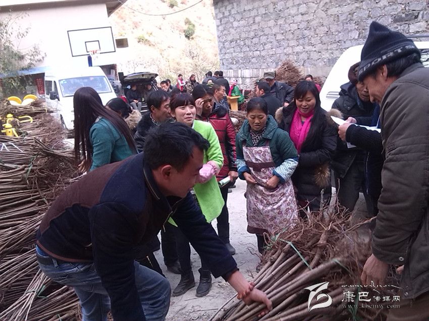 康定市羊廠村民踴躍領(lǐng)取大櫻桃樹(shù)苗。