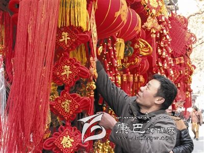 隨后,記者走進(jìn)了一家賣(mài)年貨的商鋪,看見(jiàn)寓意美好的春聯(lián)、大紅燈籠和各式彩燈等吸引了大量市民駐足選購(gòu)。店家告訴記者,由于2016年是農(nóng)歷丙申猴年,猴子的掛飾、年畫(huà)等也受到了顧客的追捧。