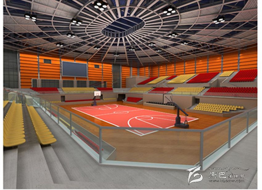 該館負(fù)一層為一個(gè)238車位的地下停車庫和若干設(shè)備用房。一層核心區(qū)是一個(gè)可進(jìn)行籃球、排球、手球、羽毛球、乒乓球、體操等比賽的標(biāo)準(zhǔn)化綜合比賽場(chǎng);周邊設(shè)休息室、會(huì)議室、消音室、醫(yī)療室、分線室、檢錄室、洗浴室、準(zhǔn)備室、轉(zhuǎn)播室等附屬功能用房。利用該轉(zhuǎn)播室可以實(shí)現(xiàn)網(wǎng)絡(luò)、電視對(duì)場(chǎng)內(nèi)活動(dòng)的實(shí)時(shí)轉(zhuǎn)播。二層主要有醫(yī)務(wù)室和休息室。三層是控制中心機(jī)房、工作室。聲光控制室、計(jì)時(shí)計(jì)分屏室在四層。體育場(chǎng)內(nèi)共設(shè)10個(gè)無障礙席位在內(nèi)的2998個(gè)固定座席和730活動(dòng)座位,分布在1至4層。