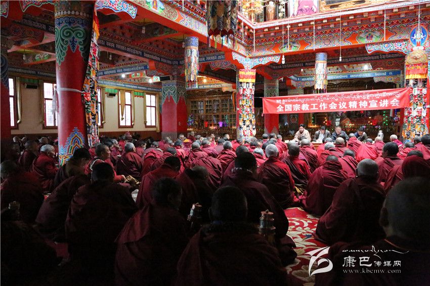 “中央和省委非常重視支持藏區(qū)經(jīng)濟(jì)社會發(fā)展和長治久安、非常關(guān)心關(guān)愛寺廟建設(shè)及其僧尼生活,州委更是在抓好發(fā)展、民生、穩(wěn)定‘三件大事’上下足了功夫,在惠寺惠僧上使足了干勁。‘十二五’以來,州上全力爭取落實(shí)了中央寺廟水、電、路等基礎(chǔ)設(shè)施建設(shè)資金1億多元,省級和州安排危房維修和專項(xiàng)資金1500余萬元, 2014年還專項(xiàng)為五明佛學(xué)院安排資金100萬元;各縣財(cái)政投入寺廟基礎(chǔ)設(shè)施資金共1.1億元,在267座寺廟開展了路、水、電、通訊、廣播電視‘五通’及危房建設(shè)。這些真金白銀的投入,帶來的是全州藏傳佛教寺廟基礎(chǔ)條件的大幅改善。面對寺廟和僧尼學(xué)習(xí)生活條件的日臻完善,難道我們不知道恩從何來嗎?‘十二五’以來,全州累計(jì)保障困難僧尼14969人,政府資助困難僧尼參加城鎮(zhèn)醫(yī)保、新農(nóng)合39014人,納入基本醫(yī)療保險38989人、養(yǎng)老保險12697人,完成52459名僧尼健康信息調(diào)查,3138名宗教場所負(fù)責(zé)人及成員享受工作補(bǔ)貼。這些看得見、摸得著的實(shí)惠,帶來的是廣大僧尼后顧之憂的迅即消除。面對這些無微不至的關(guān)愛,難道我們不知道恩向誰報(bào)嗎?今年是‘十三五’的開局之年,州委十屆八次全會確立了‘一個目標(biāo)、兩個關(guān)鍵、三件大事、六大戰(zhàn)略’總體工作格局,提出了全面建設(shè)美麗生態(tài)和諧小康甘孜的宏偉目標(biāo),我們廣大僧尼也將與全州農(nóng)牧民群眾一起精準(zhǔn)脫貧、致富奔康,住上好房子、過上好日子、養(yǎng)成好習(xí)慣、形成好風(fēng)氣。面對來之不易的幸福生活和更加美好的發(fā)展前景,難道我們不知道在感恩中奮進(jìn)、在奮進(jìn)中感恩嗎?……”以小見大的宣講、以事說理的宣傳、以情感人的對話,使得宣講內(nèi)容都成了僧尼們愛聽的大白話、通俗話和貼心話。