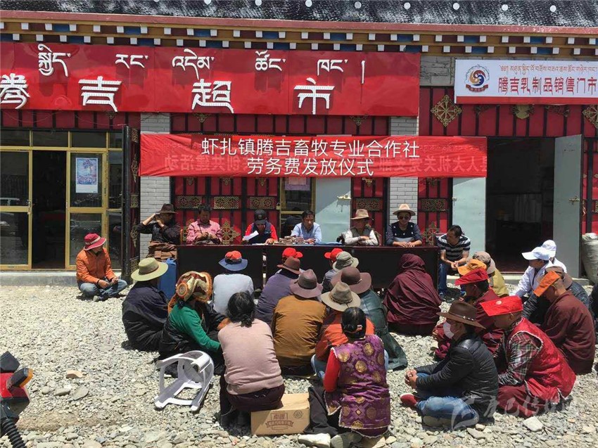 “精準(zhǔn)扶貧貴在精準(zhǔn),精確找準(zhǔn)貧困癥結(jié),準(zhǔn)確對(duì)癥下藥;由于塔須村惡劣的自然環(huán)境制約,村民們還過(guò)著古老傳統(tǒng)的游牧生活,導(dǎo)致塔須村社會(huì)、經(jīng)濟(jì)、文化發(fā)展相對(duì)滯后,全村無(wú)集體經(jīng)濟(jì)產(chǎn)業(yè),屬于我州貧困村中的貧中之貧,以往傳統(tǒng)的扶貧措施猶如灑胡椒面,治標(biāo)不治本;授人以魚(yú),不如授人以漁,為讓塔須村能建立村集體產(chǎn)業(yè),村民們能掌握一門(mén)致富手藝,州水務(wù)局結(jié)合塔須村實(shí)際,多次派遣工作組深入塔須村,了解貧困戶生活現(xiàn)狀、致富愿望,聽(tīng)取村兩委干部建言,形成專(zhuān)題脫貧報(bào)告;鑒于牧民致富愿望強(qiáng)烈,村干部建言獻(xiàn)策,在州水務(wù)局的積極協(xié)調(diào)下,在蝦扎鎮(zhèn)黨委、政府的倡導(dǎo)下,經(jīng)石渠縣人大牽頭,通過(guò)州級(jí)各聯(lián)系單位、駐村幫扶工作組和村兩委的努力,整合各方人力、物力、財(cái)力,團(tuán)結(jié)協(xié)作,于20163月成立了石渠縣蝦扎騰吉畜牧專(zhuān)業(yè)合作社,并選舉出9名致富能手為騰吉專(zhuān)業(yè)合作社理事人選。騰吉合作乃飛騰吉祥之意,寓意著牧民群眾齊心協(xié)力,共奔小康。