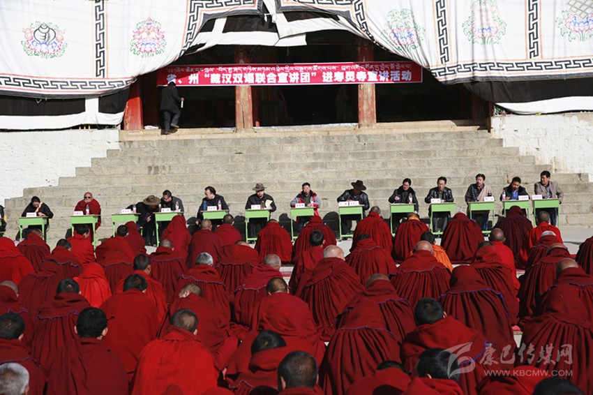 省、州藏漢雙語(yǔ)聯(lián)合宣傳團(tuán)進(jìn)寺廟開展法治宣講。 本報(bào)資料圖
