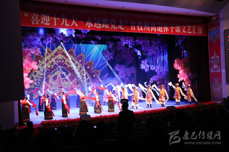 本網(wǎng)訊(記者 宋志勇 文/圖)9月29日,由州委、州政府主辦,州委組織部、州委老干部局、州文體廣新局承辦的“喜迎十九大、永遠(yuǎn)跟黨走”全州離退休干部文藝匯演在康定劇場舉行,旨在謳歌黨在藏區(qū)的豐功偉績,頌揚(yáng)甘孜兒女今天的幸福生活。州級退休老領(lǐng)導(dǎo)胡克禮、吞珠、寧紹武、便巴傾批、李明璽、何濤、李其福、郭昌平以及州委老干部工作領(lǐng)導(dǎo)小組成員單位領(lǐng)導(dǎo)和相關(guān)部門領(lǐng)導(dǎo)出席并參加活動(dòng)。州委常委、宣傳部長相洛出席活動(dòng)并致辭,省委老干部局副局長史可,州人大常委會(huì)副主任白蘇英、州政府副州長鄭天強(qiáng)、州政協(xié)副主席陳洪暴和特邀嘉賓涼山州委組織部副部長、老干局局長楊國敏出席并觀看演出。